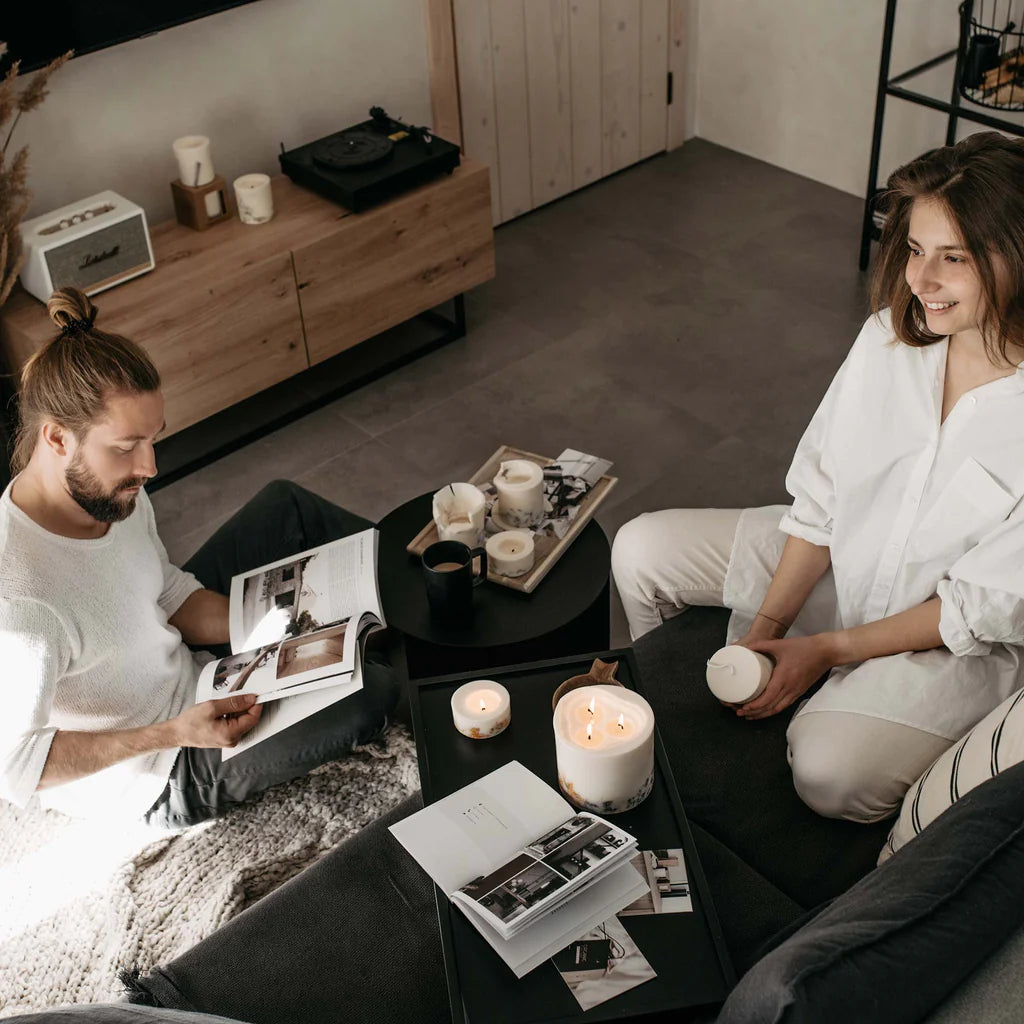 Plongez dans une ambiance luxueuse et apaisante avec cette grande bougie artisanale en cire naturelle. Dotée de trois mèches en coton de haute qualité, elle diffuse un délicat parfum de rose tout en illuminant votre intérieur.